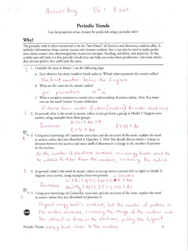 Periodic Properties Worksheet Answers / Periodic Table Worksheet Answers Chemistry Worksheets Persuasive Writing Prompts Word Problem Worksheets :